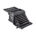 Este nuevo diseño más resistente ha superado con éxito las pruebas de inmersión, temperaturas extremas y caídas desde 1,5 metros. Dentro de esta caja, las herramientas estarán a buen recaudo y a prueba de golpes. A fin de ofrecer la máxima estabilidad y aligerar el peso durante el transporte, este nuevo modelo cuenta con un asa extensible y ruedas aptas para todo tipo de terrenos.